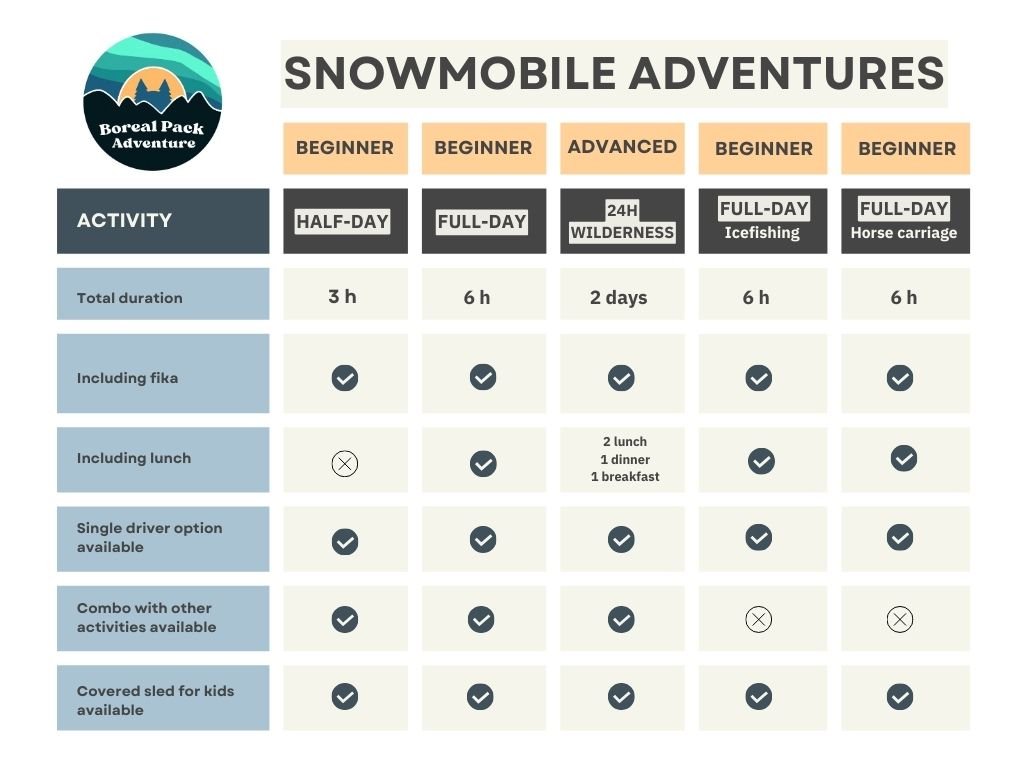 Are you exploring on your own? No problem, solo adventurers are always welcome at Boreal Pack Adventure! To ensure you get the best possible experience, a small additional fee will apply. This helps us tailor the activity just for you and make sure everything runs smoothly. We look forward to sharing our adventure with you !