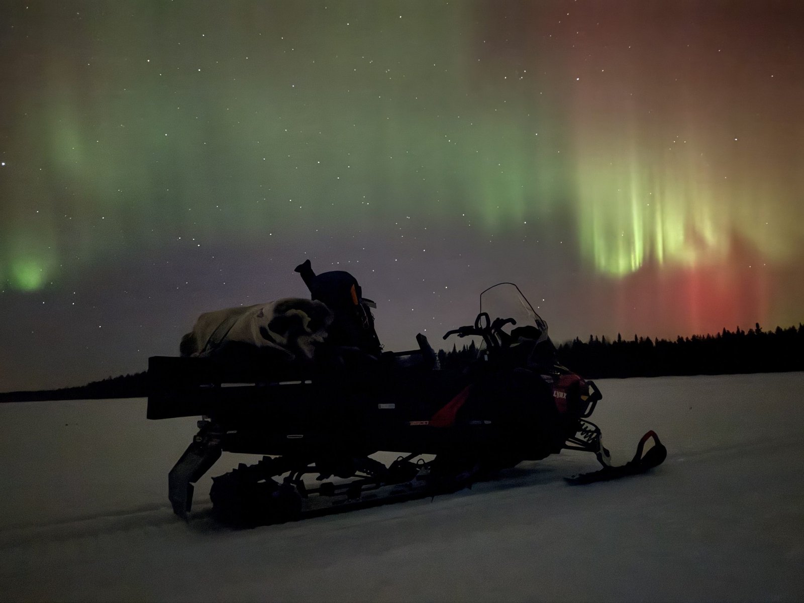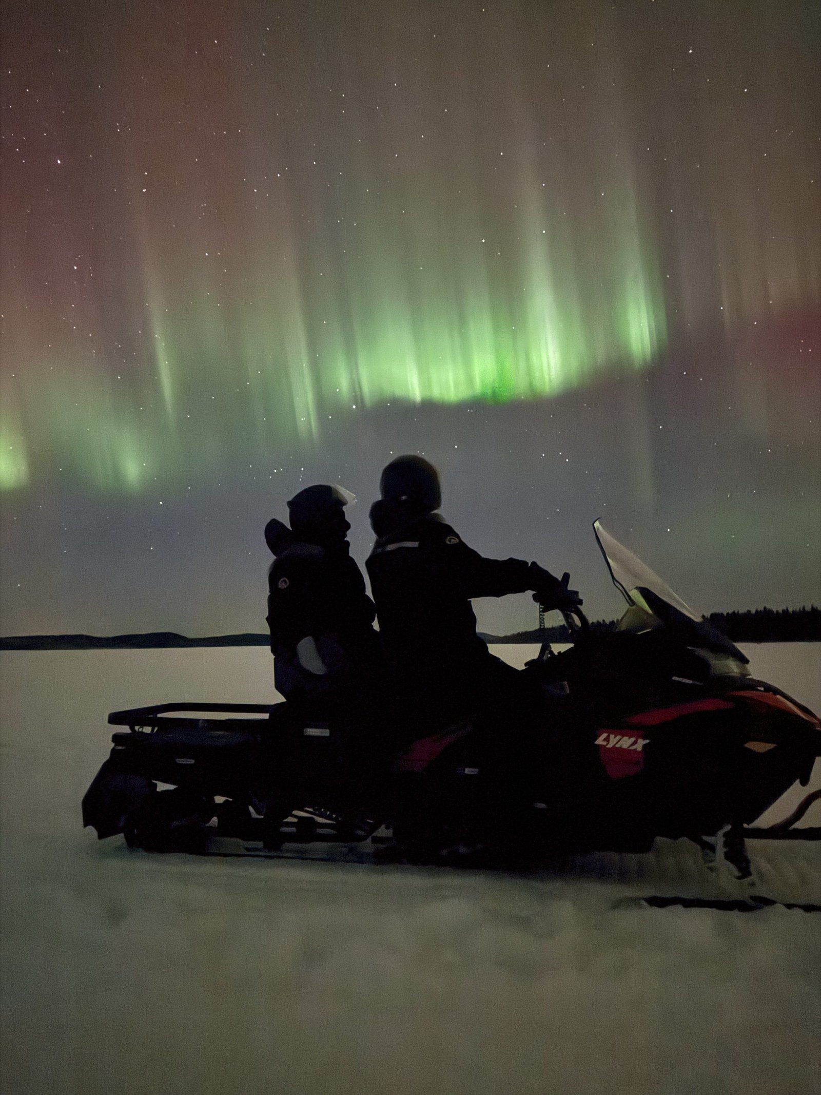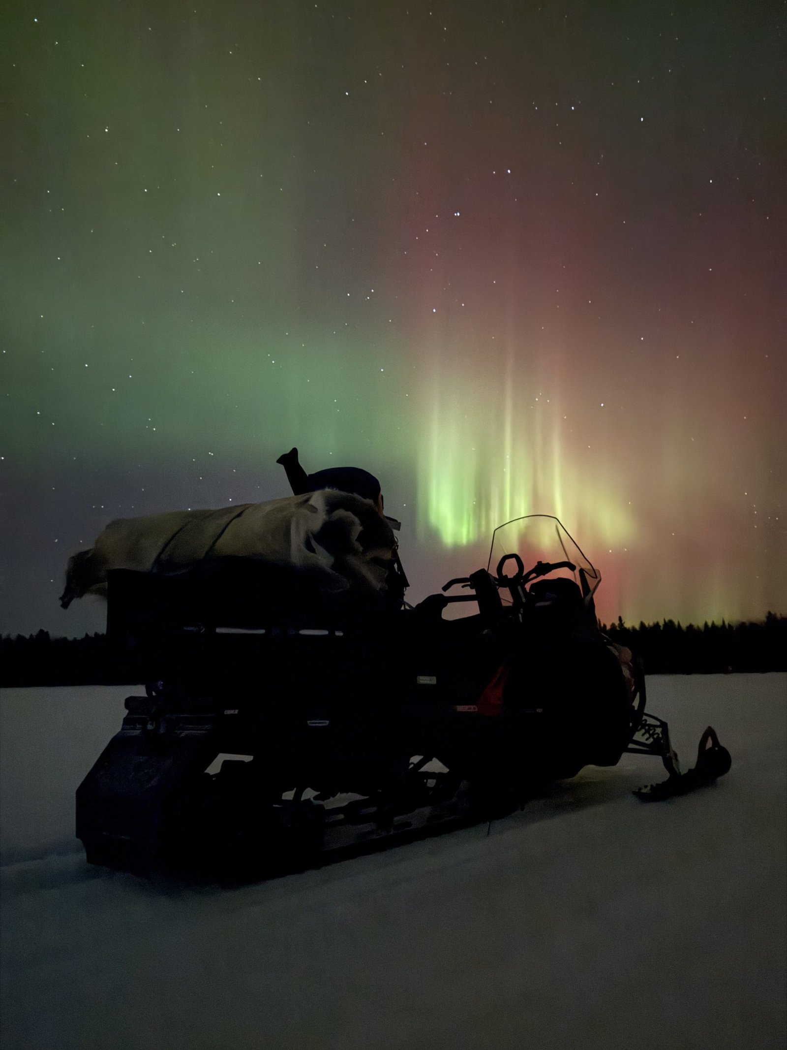 As we ride through snowy forests and across frozen lakes, your guide will lead you to remote spots with wide, open skies, perfect for aurora watching, far from artificial lights. We’ll stop at one of the best viewing locations to gather around a warm fire, sip a hot drink, roast marshmallows, and take in the silence of the night.